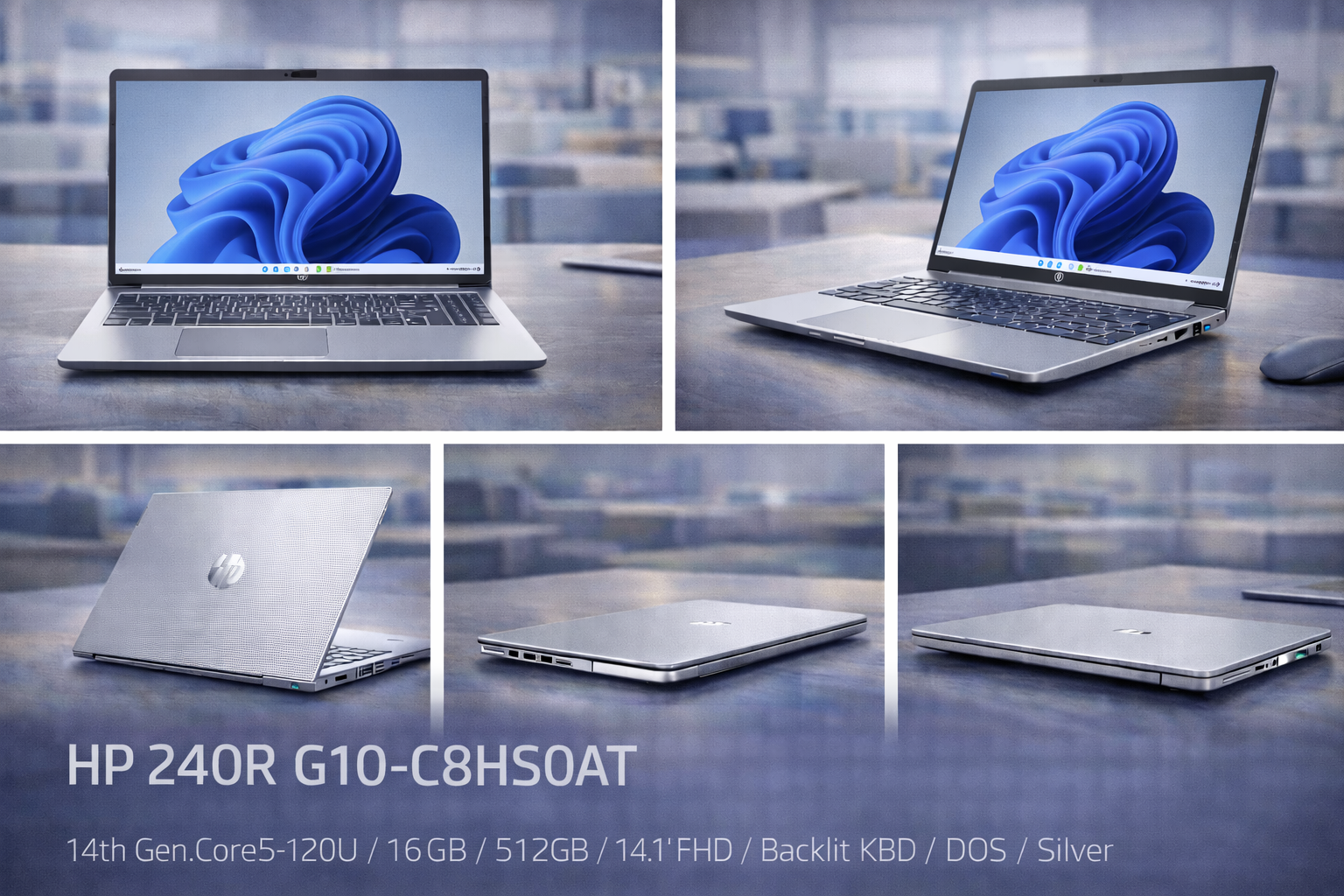 HP 240R G10 (Model: C8HS0AT) – 14th Gen Core5-120U • 16GB RAM • 512GB SSD • 14.1" FHD • Backlit Keyboard • DOS – Silver